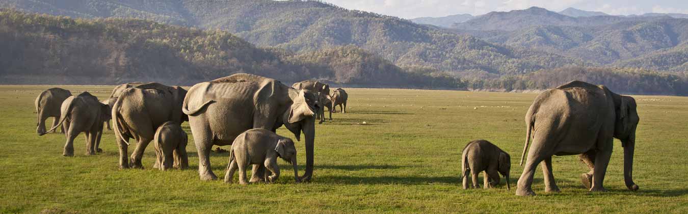 Corbett Tiger Reserve has about 700 Asian elephants. They are part of the migratory population that also lives in Rajaji National Park. Earlier, there were much fewer elephants in Corbett but their population in the park has increased significantly in recent decades. Although, present throughout the Park, elephants are most easily sighted in Dhikala chaur, Phulai chaur, and near the Saddle Dam.